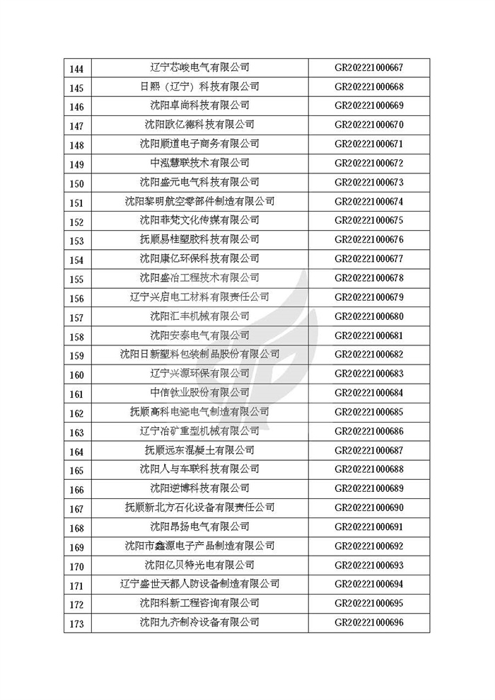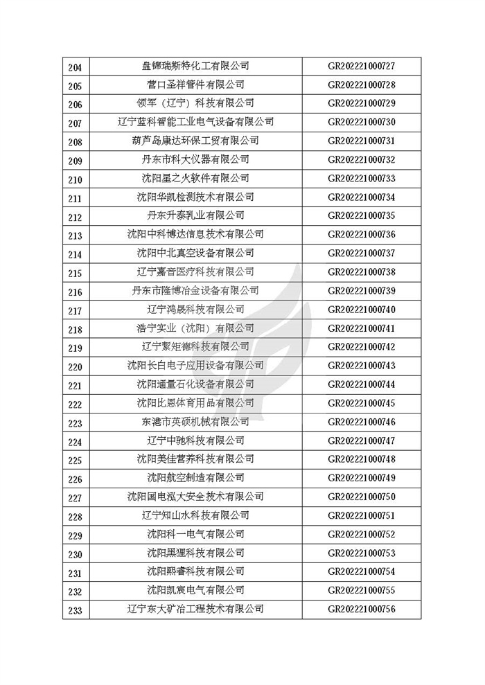 附件:辽宁省认定机构2022年认定的第二批高新技术企业备案名单
