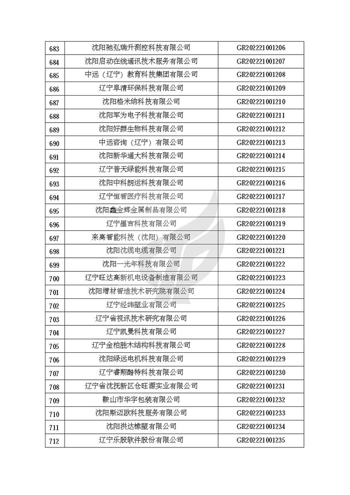 根据《高新技术企业认定管理办法》(国科发火〔2016〕32号)和《高新技术企业认定管理工作指引》(国科发火〔2016〕195号)有关规定,现对辽宁省认定机构2022年认定的第二批1142家高新技术企业备案名单(详见附件)予以公告。
