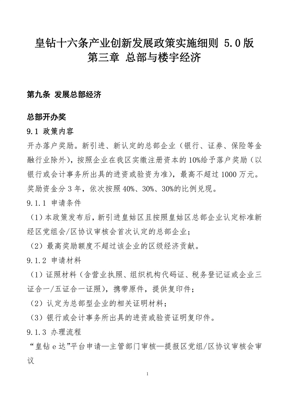 皇姑区“皇钻十六条”5.0实施细则